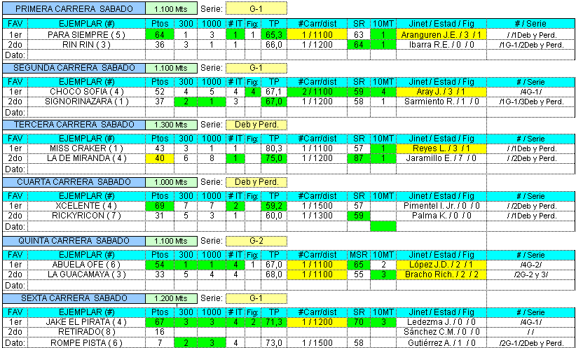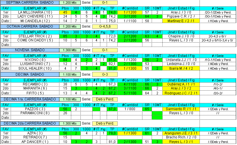 Resumen de Favoritos Sabado Caracas